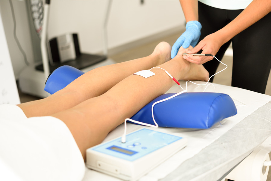 Elektroterapia - to zabieg leczniczy polegający na stosowaniu różnego rodzaju prądów. Podczas zabiegu na poszczególne miejsca na ciele pacjenta nakłada się elektrody, przez które przepuszczany jest prądo odpowiedniej częstotliwości (stały lub zmienny). Ma działanie przeciwbólowe i zmniejsza napięcie mięśniowe, poprawia ukrwienie, przyspiesza procesy regeneracji tkanek oraz sprawia, że obrzęki lepiej się wchłaniają.